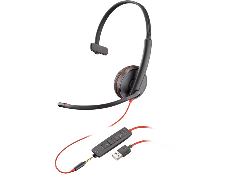 HP Poly Blackwire 3215 Monaural USB-A Wired Headset (Bulk), Noise cancelling Microphone, On-ear, Black | 80S06A6109.00