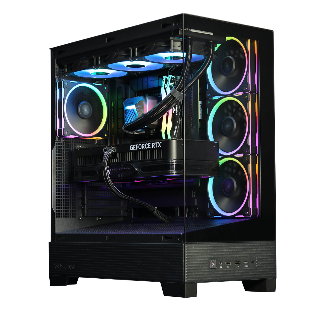 Experience the pinnacle of gaming performance in Abu Dhabi with this Ultimate AMD Ryzen 7 9800X3D Gaming PC, available as of May 28, 2025. This system is specifically designed for competitive gamers and enthusiasts, combining AMD's latest gaming-focused processor with NVIDIA's new RTX 50 series graphics, blazing-fast memory, and advanced liquid cooling for an immersive and responsive experience. At the very heart of this gaming powerhouse is the revolutionary AMD Ryzen 7 9800X3D processor. This 8-core, 16-thread CPU on the AM5 socket, with its massive 104MB of cache, is specifically engineered for unparalleled gaming performance, delivering exceptional frame rates and responsiveness in the most demanding titles. It's perfectly complemented by the powerful ASUS DUAL RTX 5060 Ti OC Edition graphics card with a generous 16GB GDDR7 memory. This dual-fan GPU ensures stunning visuals and smooth frame rates, even in high-resolution gaming. The ASUS TUF Gaming B850-PLUS WIFI DDR5 motherboard provides a robust and feature-rich foundation for this AM5 build. It features PCIe 5.0 support for future upgrades, multiple M.2 slots, and cutting-edge WiFi 7 for ultra-fast and reliable wireless connectivity, ensuring seamless online gaming and streaming. A blazing-fast 32GB (2x16GB) G.Skill Trident Z5 Neo DDR5 RAM kit running at 6000MHz with AMD EXPO support (CL30 latency) ensures ultra-smooth multitasking and responsiveness for all your gaming and application needs. Storage is handled by a spacious 2TB Kingston NV3 NVMe SSD, providing rapid access to your game library and applications with reliable PCIe 4.0 speeds (up to 6000MB/s). Keeping the powerful AMD Ryzen 7 9800X3D cool and performing optimally is the ASUS PRIME LC 360 ARGB LCD liquid CPU cooler. This large 360mm AIO cooler features a customizable LCD display for real-time monitoring and vibrant ARGB lighting, ensuring excellent thermal performance and a striking visual element. Powering the entire system is a robust 850W DeepCool PN850D 80 Plus Gold power supply with Cybenetics Gold certification, providing efficient and stable power delivery for all components. All these powerful components are elegantly housed in the stylish ASUS A31 Plus black gaming case, which features an 8-degree elevated air dynamic design, tempered glass side panel, and four pre-installed ARGB fans for optimal airflow and stunning aesthetics.