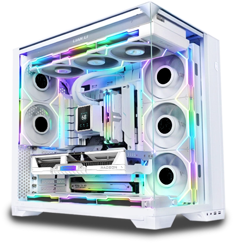 A reliable 850W SilverStone Gold power supply provides ample power for all components. The Lian Li O11 Vision White case offers a stunning panoramic view of your build, complemented by Acegeek Pandora white ARGB fans for optimal airflow and aesthetics.