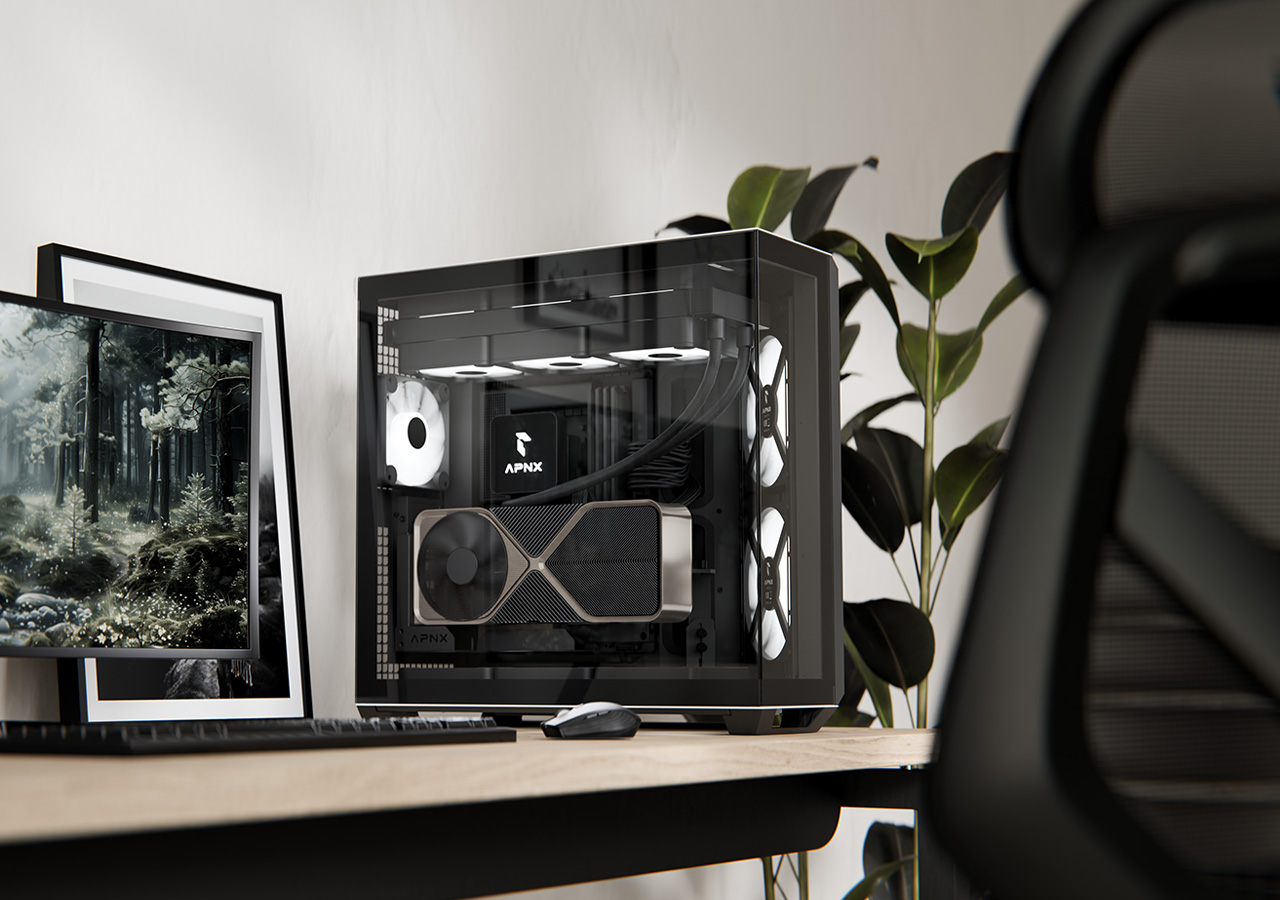 | Computer Case | APNX V1-W-BK-V1 Glass Edition Mid Tower, 360mm Radiators, x10 Fans, Wood Front Panel, Black & Wood, Model: APCM-VI01103.11, UPC: 192275001988, EAN: 4711099479559 |