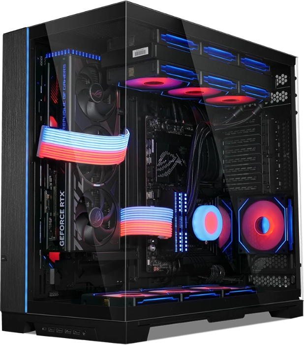 Encased in the iconic Lian Li O11 Dynamic EVO XL case, this system exudes a sense of sophistication and power. Enhanced with Lian Li UNI FAN TL Wireless LCD fans and STRIMER wireless RGB cables, this build offers unparalleled aesthetics and a truly immersive experience.