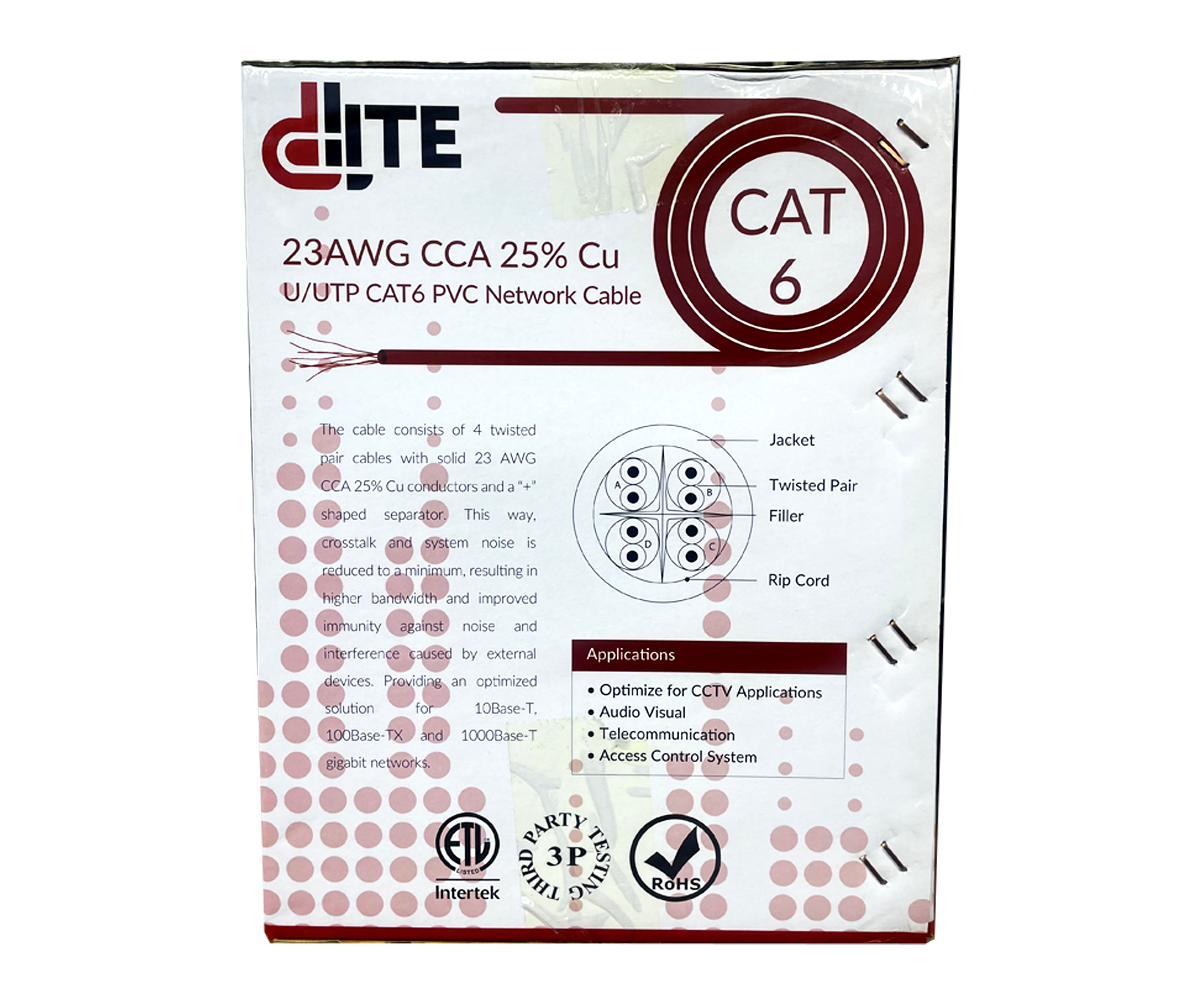 Home/Networking/Networking Cables/Cat 6/Dlite CAT6 23AWG CCA 25% Cu U/UTP CAT6 PVC Network...