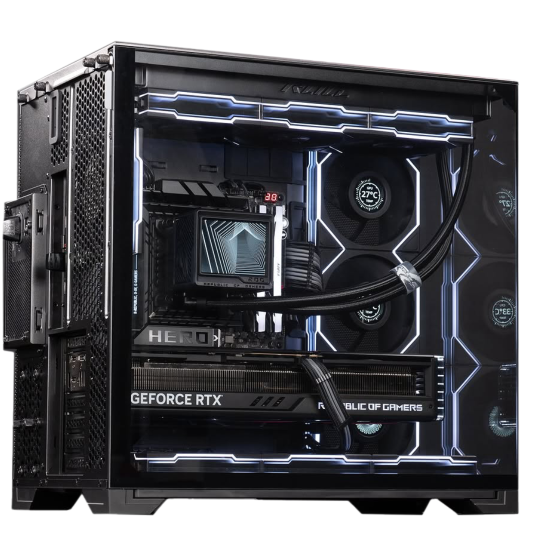 Experience gaming at its finest with this meticulously assembled, high-end gaming PC. We've hand-picked each component to deliver a truly exceptional gaming experience. From the robust ASUS Maximus Z890 Hero motherboard to the powerful Intel Core Ultra 7 processor and the stunning NVIDIA GeForce RTX 4080 graphics card, every detail has been carefully considered. 64GB of high-speed DDR5 RAM and a blazing-fast 4TB Samsung 990 Pro SSD ensure smooth performance and lightning-quick load times. Housed in the sleek and stylish Lian Li O11 Compact case and kept cool by an advanced liquid cooling system, this PC is as beautiful as it is powerful. It's the complete package for serious gamers