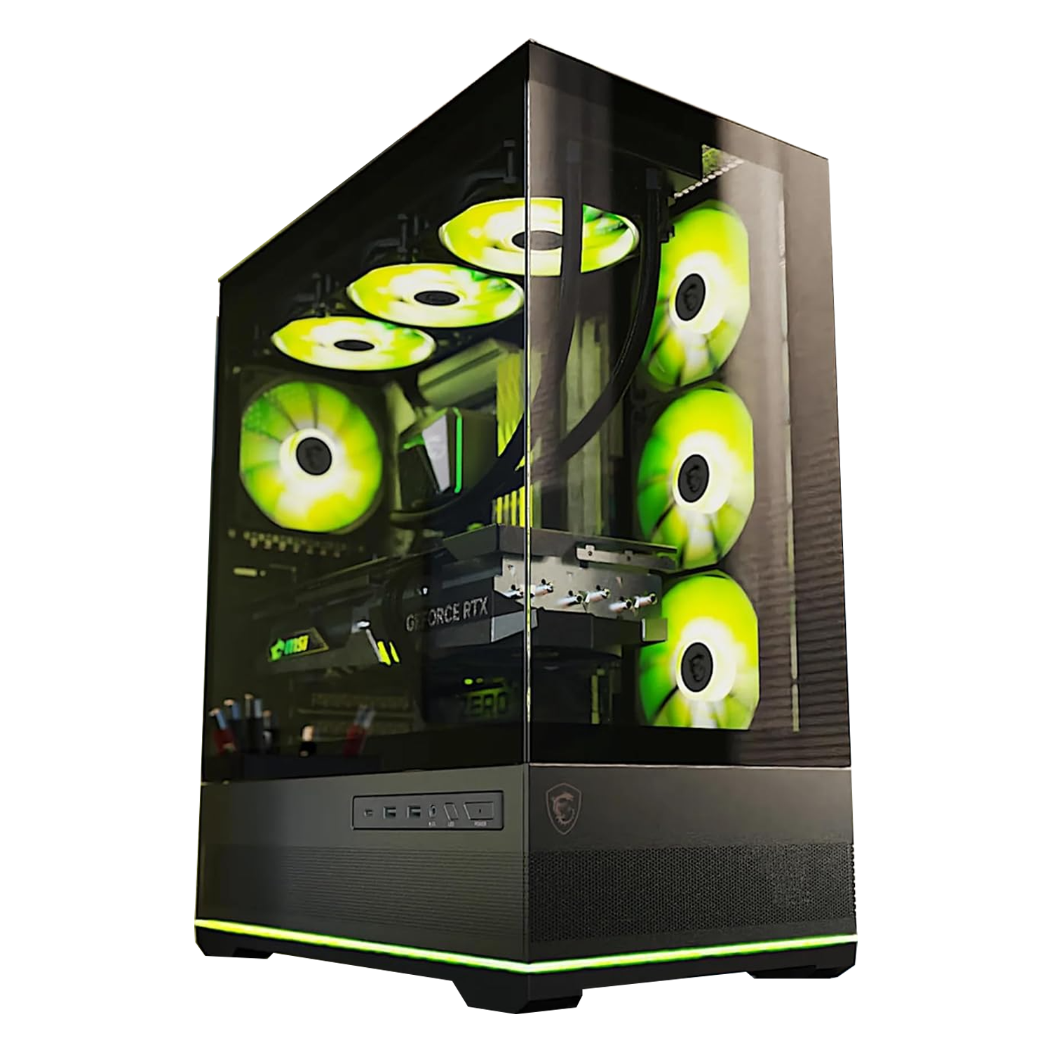 The entire system is housed in the eye-catching MSI MAG PANO 110R PZ case, which offers a clean, panoramic view of the components and synchronized ARGB lighting. The MSI B650M Project Zero motherboard places connectors on the rear, maximizing the visual clarity inside the chassis. With 32GB of 6000 MT/s DDR5 RAM and a rapid 1TB PCIe 4.0 NVMe SSD, this PC provides fluid responsiveness and lightning-fast loading speeds across all your games and applications.