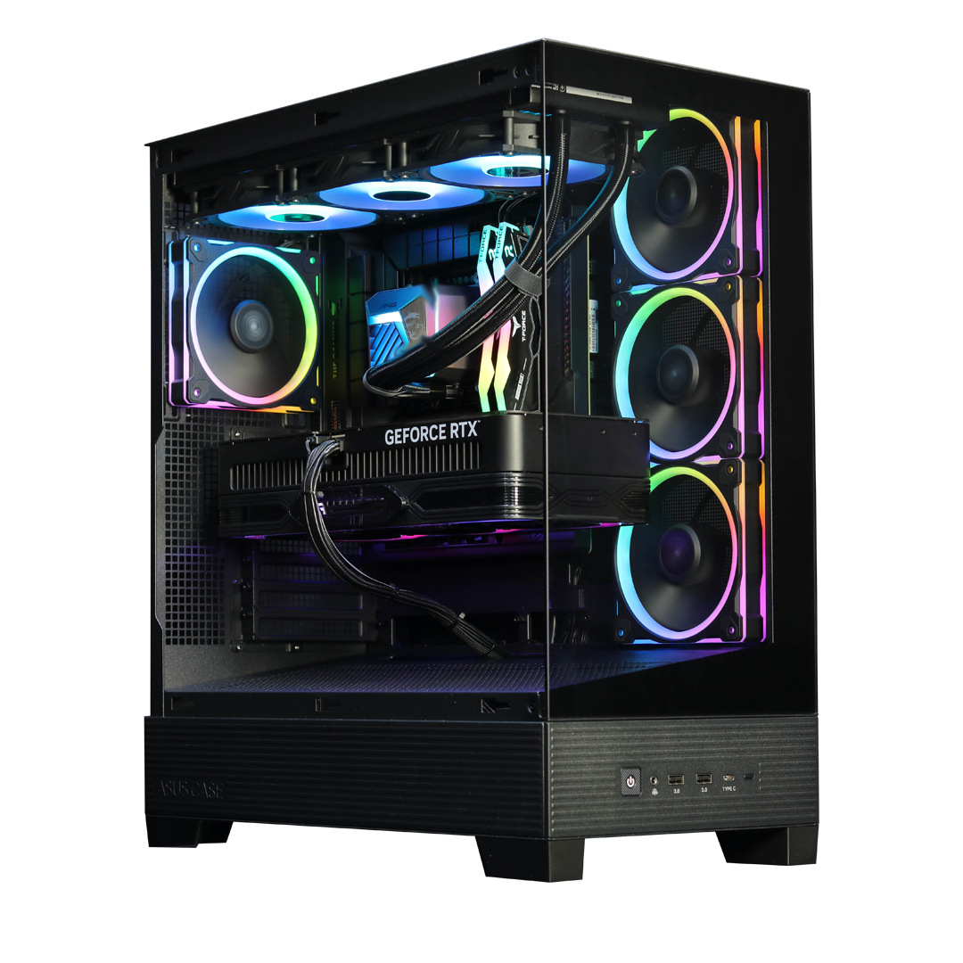 Experience powerful and visually stunning gaming in Abu Dhabi with this Intel 50 Series Gaming PC, available as of May 24, 2025. This system is engineered for serious gamers and streamers, combining Intel's latest 14th Gen processor with NVIDIA's new RTX 50 series graphics, ample fast memory, and robust 360mm liquid cooling, all within a stylish ARGB-lit case.