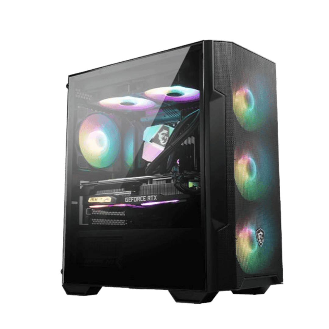 Experience solid gaming performance and efficient multitasking in Abu Dhabi with this Mid-Range Gaming PC, available now. This meticulously designed system brings together Intel's robust 14th Gen Core i7 processor with ZOTAC GAMING's new RTX 50 series graphics, high-speed DDR5 memory, ample storage, and vibrant ARGB liquid cooling, all housed within a compact MSI MAG FORGE micro-ATX chassis for a clean and visually appealing setup. At the heart of this gaming machine is the capable Intel Core i7-14700F 14th Gen processor. With 33MB cache and turbo speeds up to 5.40 GHz on the LGA1700 socket, this CPU delivers excellent performance for demanding games, content creation, and everyday multitasking. It's perfectly complemented by the capable ZOTAC GAMING 5050 Twin Edge 8GB GDDR6 graphics card. This new RTX 50 series GPU, featuring ZOTAC's FireStorm cooling with a 2-fan black design, provides reliable performance for smooth 1080p and capable 1440p gaming across a wide range of titles, leveraging its 8GB of GDDR6 memory. The MSI PRO B760M-E DDR5 motherboard provides a reliable Micro-ATX foundation for this Intel LGA 1700 build. It supports DDR5 memory (up to 5600MHz), features LAN for wired networking, HDMI and VGA outputs for display flexibility, dual M.2 slots for storage expansion, and is equipped for ARGB Gen 2 lighting control. A blazing-fast 32GB (2x16GB) T-FORCE DELTA RGB DDR5 RAM kit running at an impressive 6400MHz with Intel XMP 3.0 and AMD EXPO compatibility ensures ultra-smooth multitasking and responsiveness for all your gaming and application needs, enhanced by its vibrant black RGB lighting. Storage is handled by a responsive 1TB WD Blue SN5000 PCIe 4.0 NVMe M.2 SSD, offering read/write speeds up to 5150MB/s. This provides ample space for your essential games and applications, ensuring fast load times. Keeping the powerful Intel Core i7-14700F cool and performing optimally is the MSI MAG CORELIQUID A13 240 ARGB Liquid Cooler. This 240mm AIO cooler with ARGB fans ensures effective thermal management for consistent peak performance. Powering the entire system is a reliable 650W DeepCool PF650D power supply, providing stable and efficient power delivery for all components. All these components are neatly housed in the MSI MAG FORGE M100R Micro-ATX Gaming Case, a compact tower that includes four pre-installed fans for excellent airflow and striking RGB lighting