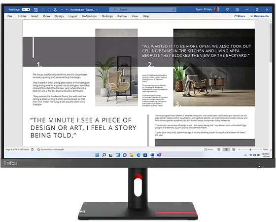 The ThinkVision S27i-30 Monitor is the most practical choice for your daily office-related tasks. Its 27-inch In-Plane Switching screen displays rich, delightful colors with 1920 x 1080 resolution. A 99% sRGB color gamut offers you consistent colors and sharper images no matter the viewing angles. Modern, stylish, and sophisticated, this monitor comes in a Storm Gray color, a real treat for the eyes. Its borderless design affords a distraction-free viewing experience, even while multitasking. Built-in Natural Low Blue Light technology filters out harmful blue light, reducing eye strain during extended screen time while keeping picture quality intact.