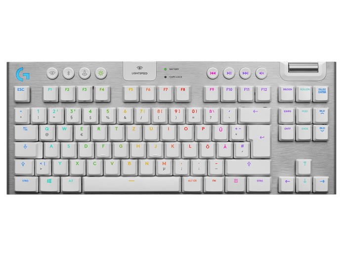 A breakthrough in design and engineering, now in black and white colorways. G915 TKL features LIGHTSPEED pro-grade wireless, advanced LIGHTSYNC RGB, and high-performance low-profile mechanical switches. Meticulously crafted from premium materials, the G915 TKL is a sophisticated design of unparalleled beauty, strength, and performance, now in an even more compact form factor. G915 TKL. Play the next dimension.