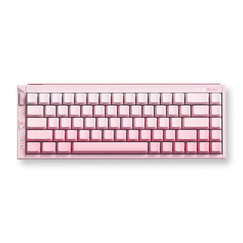 The Ace 68 Turbo is as durable as it is fast. Machined from a solid block of high-grade aluminum, the chassis weighs a substantial 1361g, providing a rock-solid foundation that won't budge during intense matches. The 65% ANSI layout (68 keys) saves vital desk space for large mouse swipes while retaining essential arrow keys. The aesthetic is completed with Peachy Pink color-matching Cherry profile keycaps and brilliant south-facing RGB LEDs for an immersive glow.
