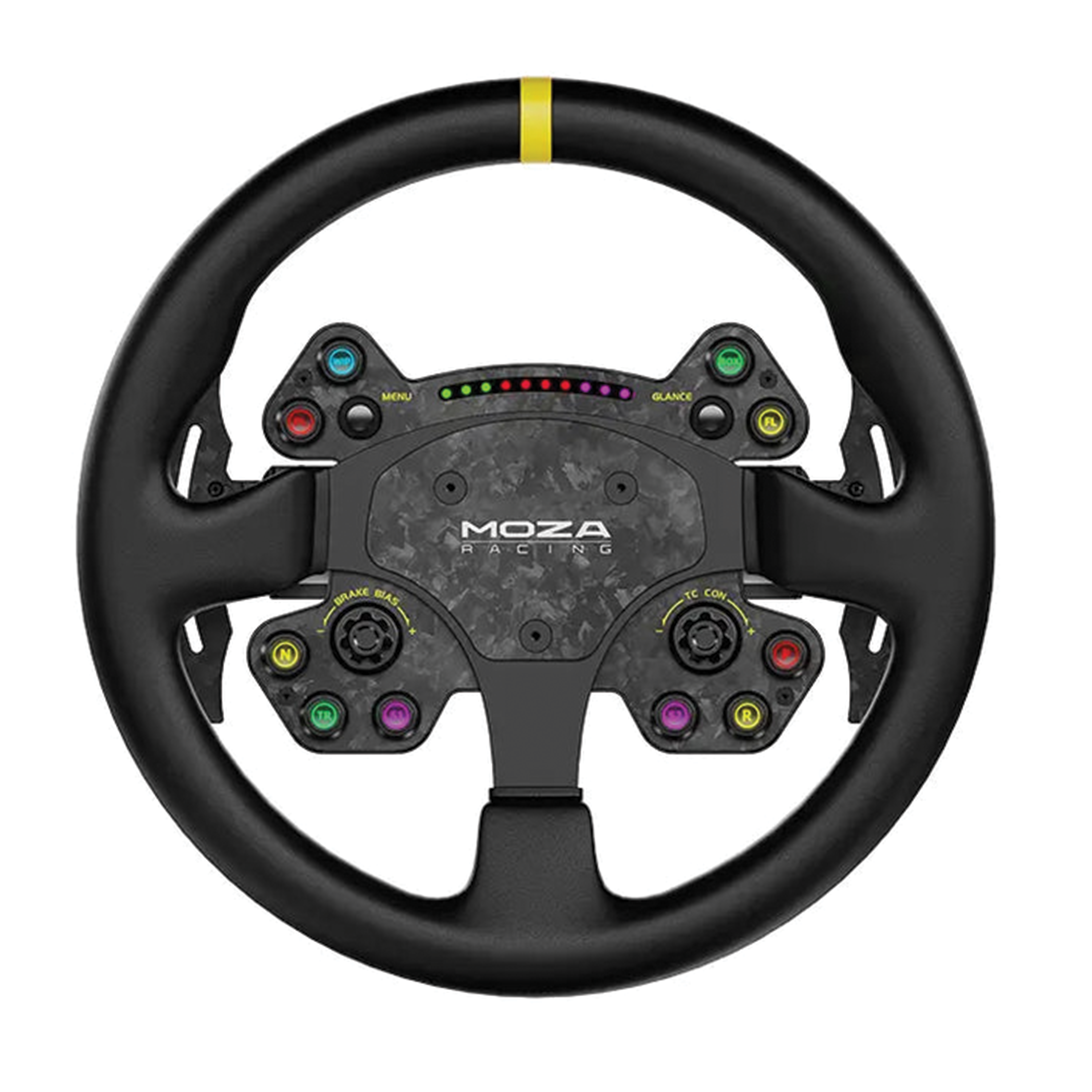 The Moza Quick Release system, made of aviation-grade aluminum, allows for near-instant wheel swaps. The 13-inch diameter provides the ideal leverage for GT and street car simulations, while the ergonomic design reduces hand fatigue. With 8 button color options and 7 shift light color choices, you can tailor the look of your wheel to perfectly match your setup’s aesthetic.