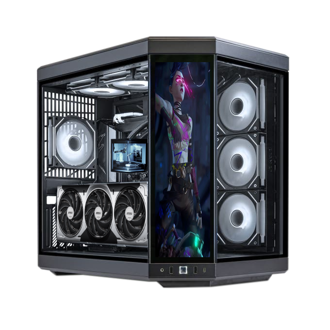 All components are housed in the revolutionary HYTE Y70 TOUCH Infinite Case, featuring a stunning 14.5" display panel and a pitch black dual-chamber chassis for optimal airflow and cable management. Enhance your build with the included Lian Li UNI FAN TL Wireless LCD 120 ARGB Single Fan, Lian Li UNI FAN TL LCD 120 RGB 3-Pack with Controller, Lian Li STRIMER Wireless 16-12 RGB cable, and Lian Li STRIMER Wireless 24-pin RGB cable, adding a touch of personalized flair and stunning RGB lighting. This MSI Powered Ultimate 5090 Gaming PC delivers an unparalleled gaming experience, combining cutting-edge technology with premium components and stunning visuals