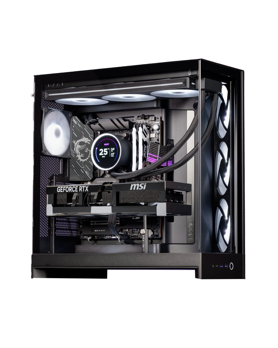 Storage is handled by a capacious 4TB MSI SPATIUM M461 NVMe SSD. This PCIe 4.0 SSD provides ample space for your massive game library and colossal project files, ensuring quick load times and efficient data handling. Keeping the powerful AMD Ryzen 9 9950X3D cool and performing optimally is the NZXT Kraken Elite 420 RGB AIO Liquid Cooler. This massive 420mm AIO cooler features a vibrant IPS LCD display and RGB core, providing both superior thermal management for extreme overclocking and an exquisite visual centerpiece. Powering the entire system is a robust 1300W MSI MEG AI1300P PCIE5 80 Plus Platinum Certified ATX 3.1 power supply. This high-efficiency PSU ensures incredibly stable and abundant power delivery for all components, even under the most extreme loads, and is PCIe 5.0 ready for next-gen hardware. All these premium components are elegantly showcased in the iconic NZXT H9 FLOW RGB+ Large Dual-Chamber Mid-Tower ATX Gaming Case, renowned for its exceptional airflow, spacious dual-chamber design, and full RGB lighting with integrated control hub, providing a stunning view of your high-end hardware.