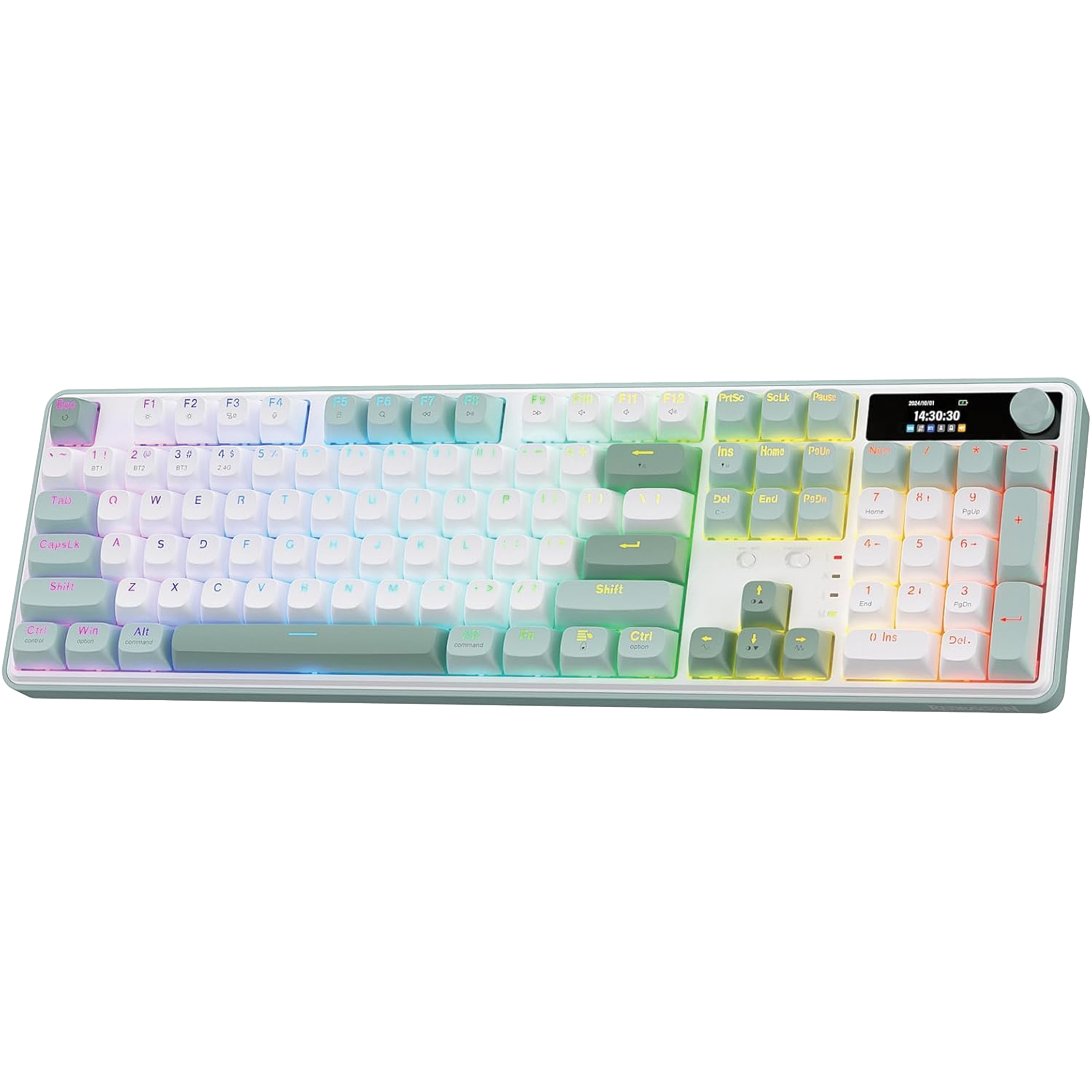 •Smart Info-Island Screen - 1.41 in info center TFT screen, gathering keyboard info, connection mode, battery level, typing status, unveiling everything you want to know, enjoy gif meme customized fun for the present mood.