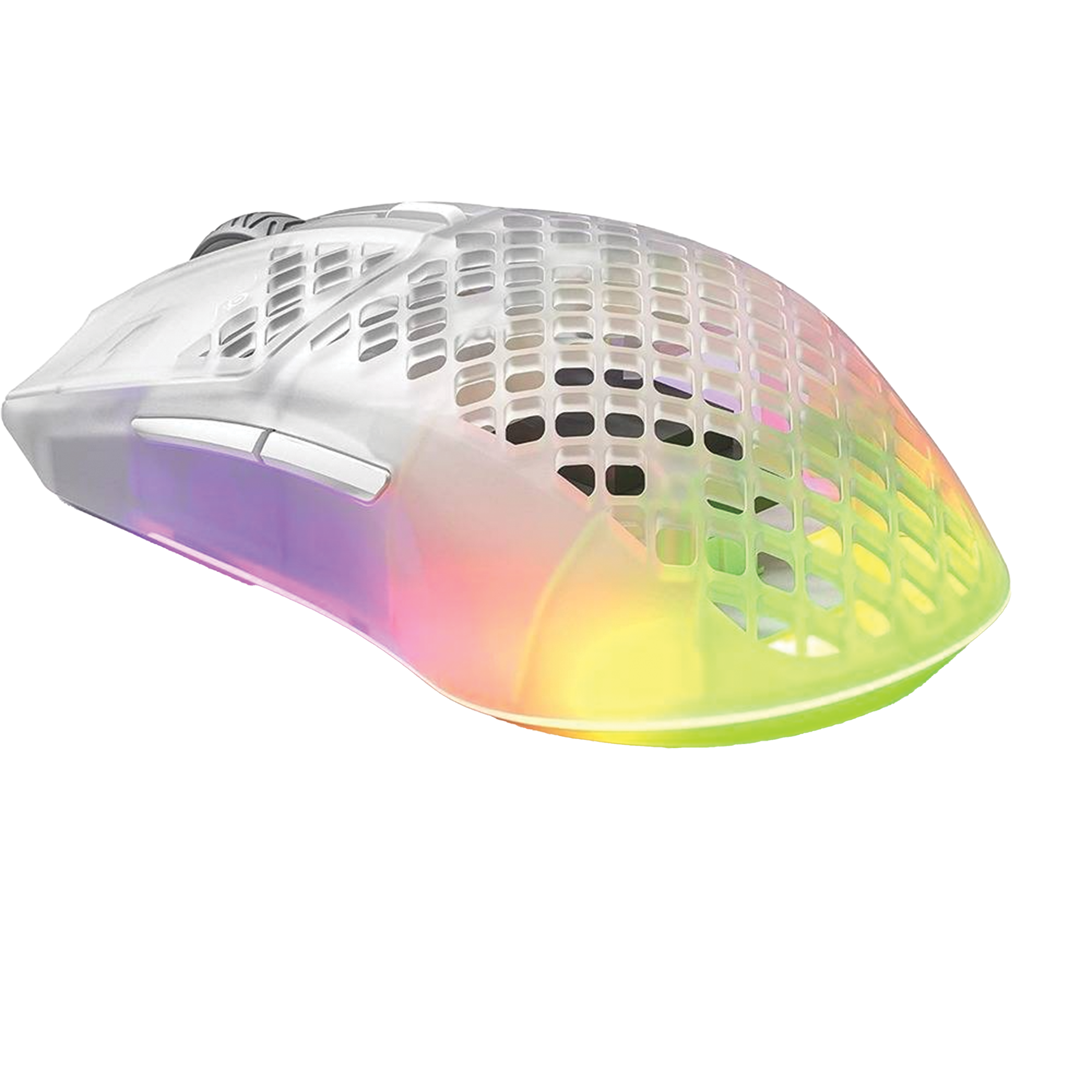 Stand out from the crowd with the Aerox 3 Wireless Ghost. This limited edition features a distinct translucent matte finish that allows the radiant 3-zone PrismSync RGB to shine through the entire body of the mouse. The "holey" honeycomb shell isn't just for looks; it reduces the total weight to an incredible 68g, enabling effortless, high-speed swipes and flicks that are essential for competitive FPS and MOBA gaming.